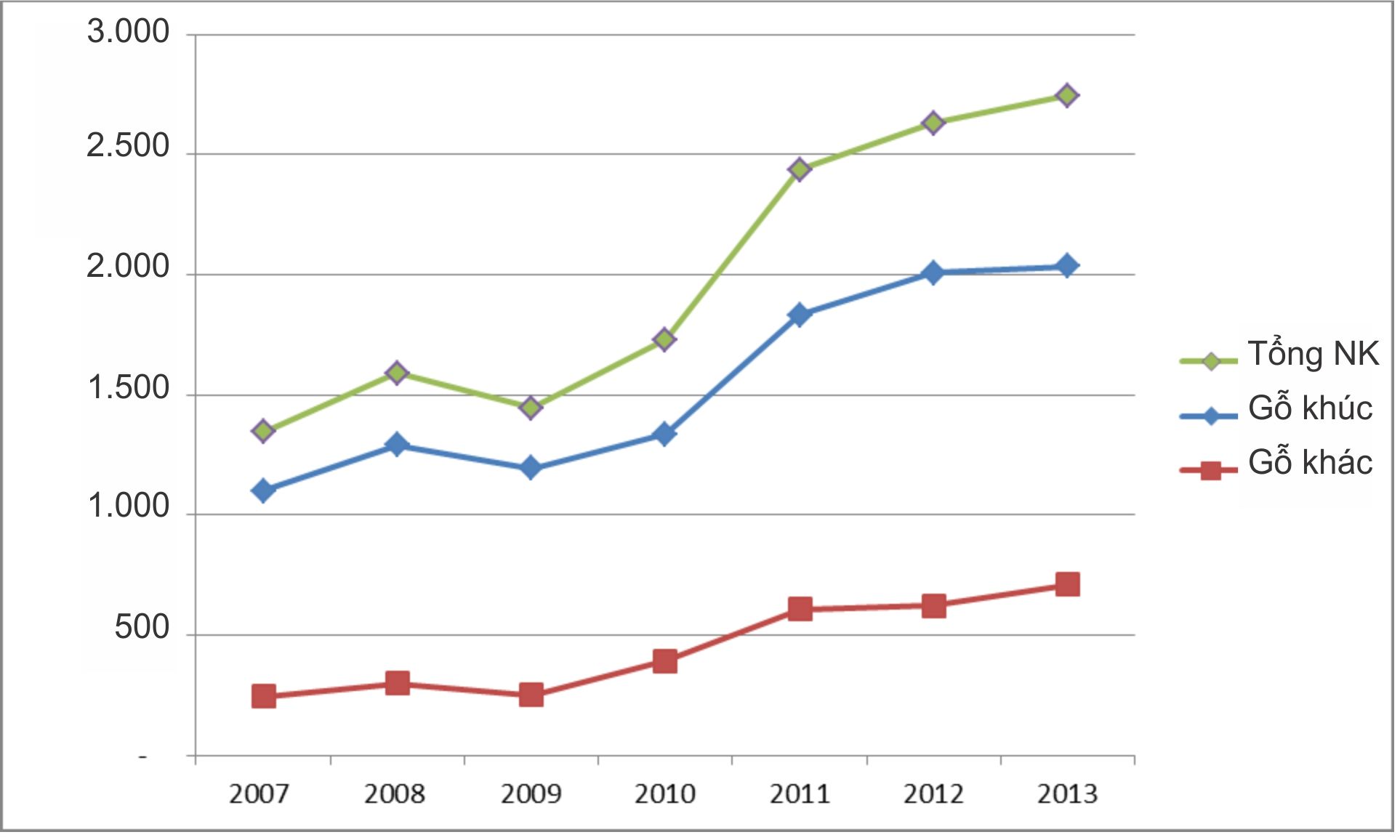 Trong vòng 10 năm qua, kim ngạch nhập khẩu gỗ khúc và các sản phẩm gỗ của Ấn Độ hàng năm đã tăng từ 500 triệu đô-la Mỹ lên 2,7 tỉ đô-la Mỹ. Nguyên nhân là do nguồn tài nguyên rừng bị thu hẹp và những hạn chế của chính phủ trong việc thu hoạch gỗ nội địa cùng với đó là nhu cầu tiêu dùng và sự đầu tư về mặt hàng đồ gỗ và nội thất tăng cao.