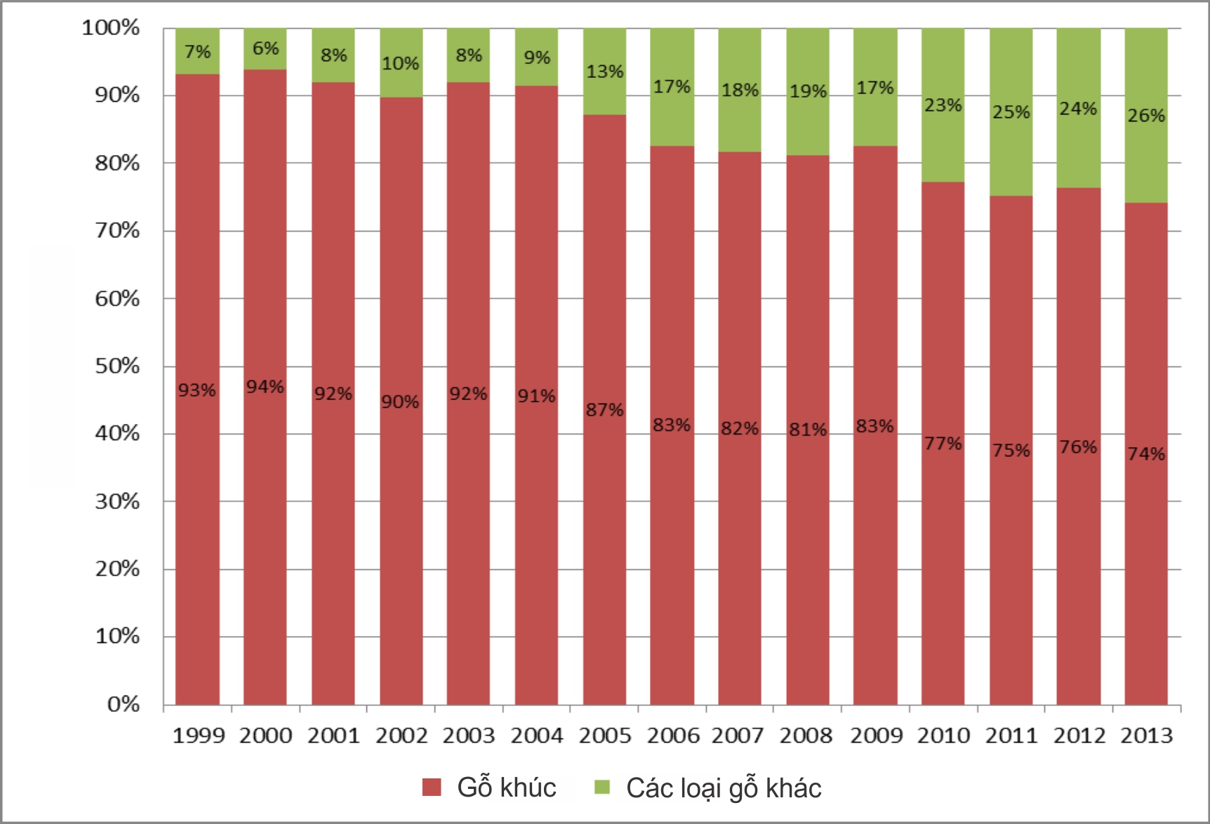 Trong vòng 10 năm qua, kim ngạch nhập khẩu gỗ khúc và các sản phẩm gỗ của Ấn Độ hàng năm đã tăng từ 500 triệu đô-la Mỹ lên 2,7 tỉ đô-la Mỹ. Nguyên nhân là do nguồn tài nguyên rừng bị thu hẹp và những hạn chế của chính phủ trong việc thu hoạch gỗ nội địa cùng với đó là nhu cầu tiêu dùng và sự đầu tư về mặt hàng đồ gỗ và nội thất tăng cao. Tuy vậy, Ấn Độ cũng là một nhà xuất khẩu đồ nội thất bằng việc xử lí gỗ thô nhập khẩu thành sản phẩm hoàn chỉnh. Với mục đích gia tăng tối đa giá trị cho sản phẩm và giảm áp lực lên tài nguyên rừng nội địa, Ấn Độ áp dụng mức thuế thấp cùng với chính sách tự do nhập khẩu khiến gỗ khúc trở thành mặt hàng dẫn đầu danh sách nhập khẩu của nước này trong nhiều năm qua. Tuy nhiên, thuế nhập khẩu cũng áp dụng với một số mặt hàng đồ gỗ đã qua xử lí; điều này làm giảm tỷ lệ kim ngạch nhập khẩu của gỗ khúc từ 90% xuống 74% trong 10 năm trở lại đây.